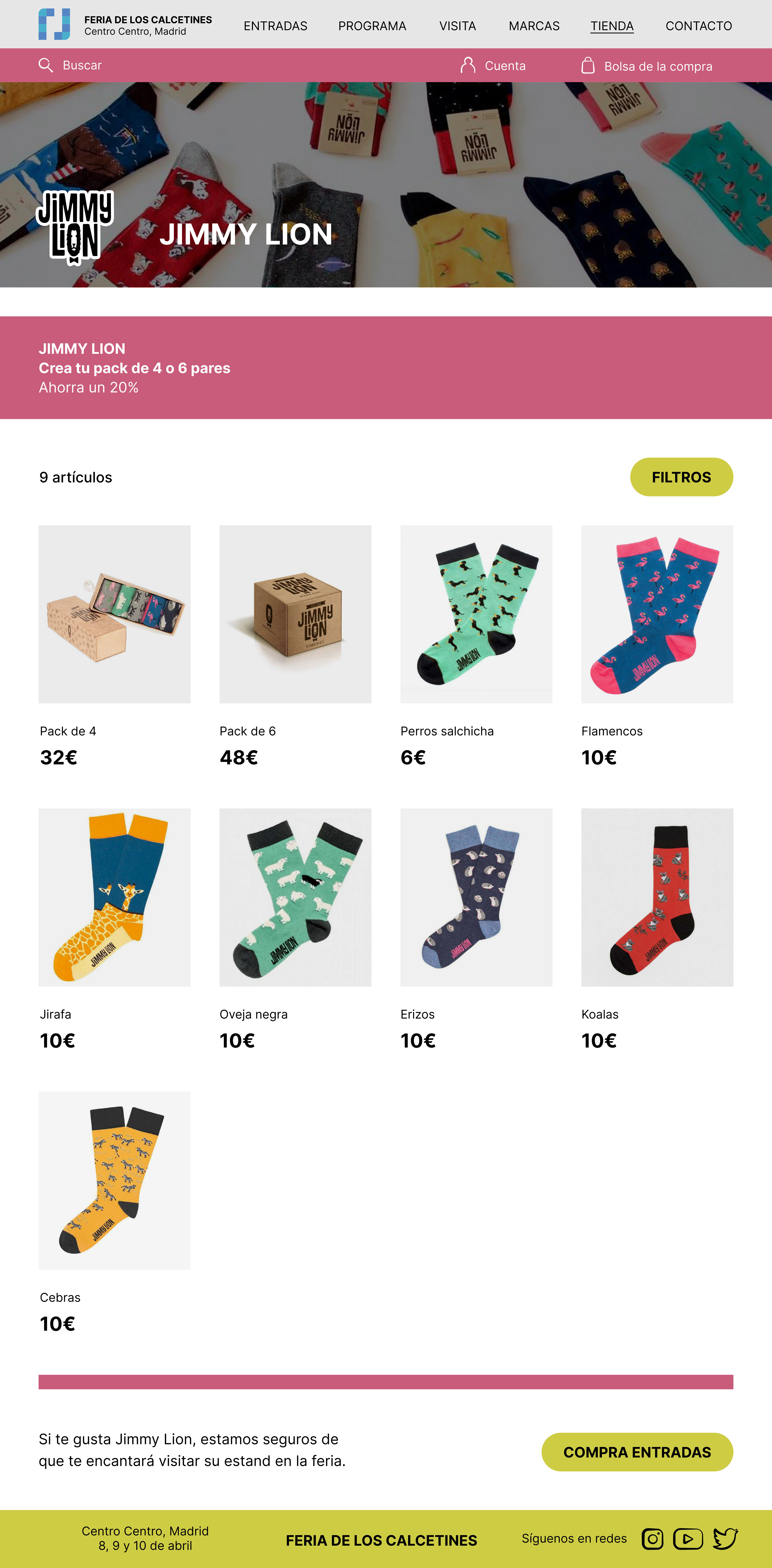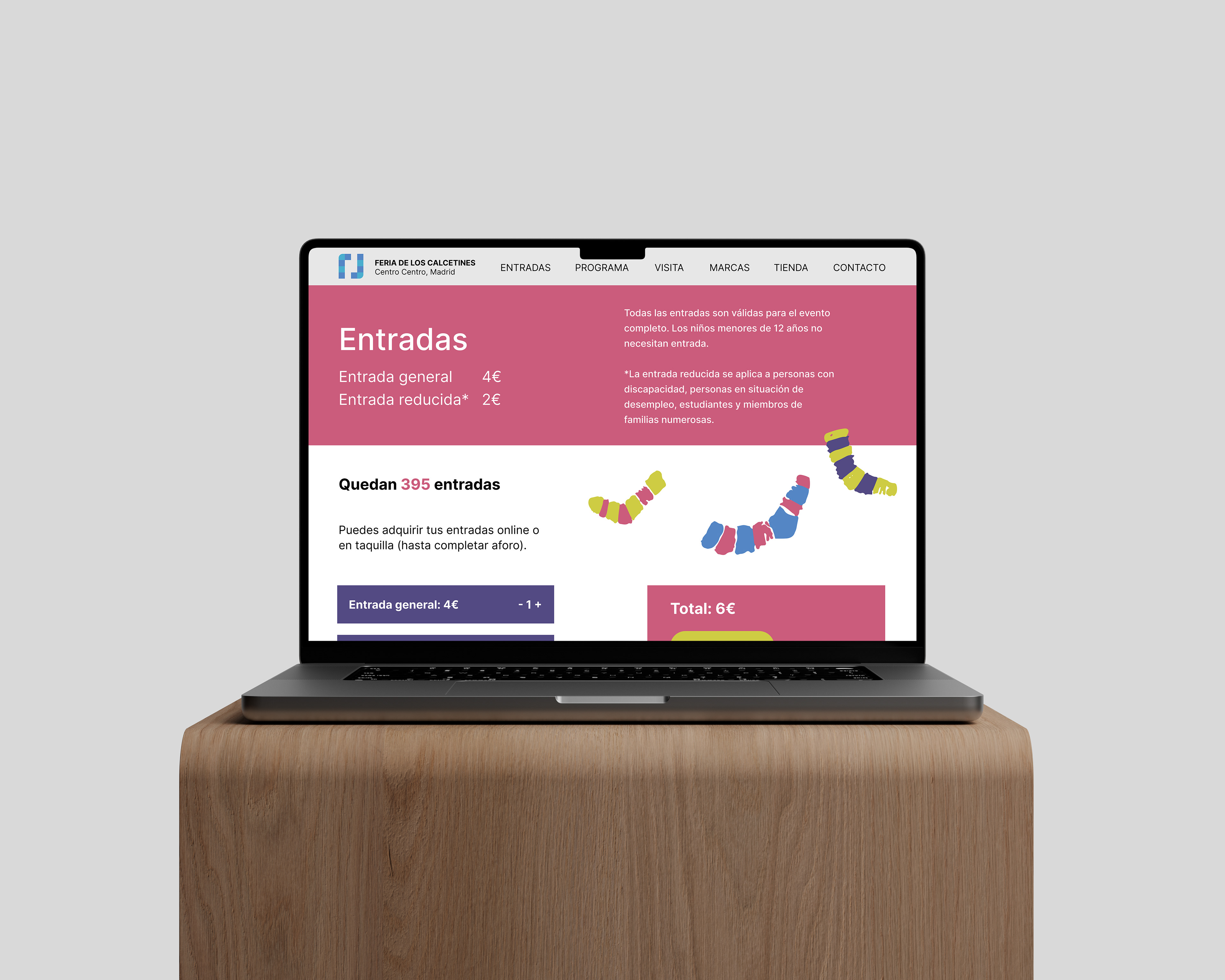 La Feria de Calcetines era un evento ficticio que creé para este proyecto de la asignatura Diseño Interactivo. En él, las grandes marcas de este sector se reunirían para vender sus productos además de para dar masterclasses y talleres en torno a los calcetines.